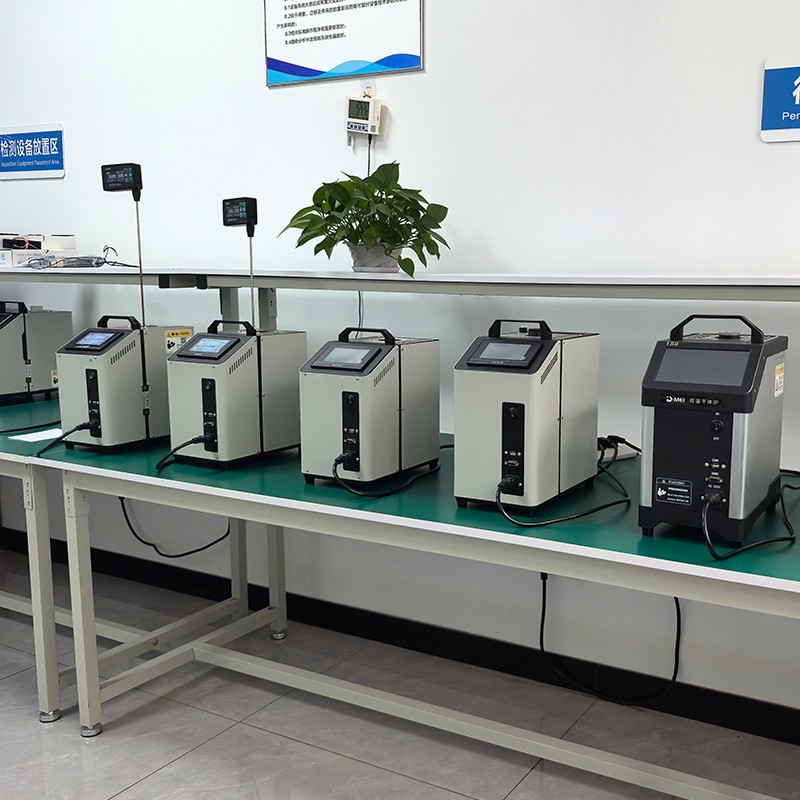 Handheld Dry Block Temperature Calibrator, the test temperature range: indoor temperature +5℃-400℃. Hand-held, small size, easy to carry, and rapid heating. Completely solve the shortcomings of too long heating and temperature control time, saving time and effort to use. The hand-held intelligent dry-body furnace uses a high-stability temperature controller, and the soaking block is made of alloy materials with good thermal conductivity. It is technically synchronized with domestic and foreign advanced technologies, and is widely used in machinery, shipbuilding, chemical, food, electric power, pharmaceuticals and other industries.