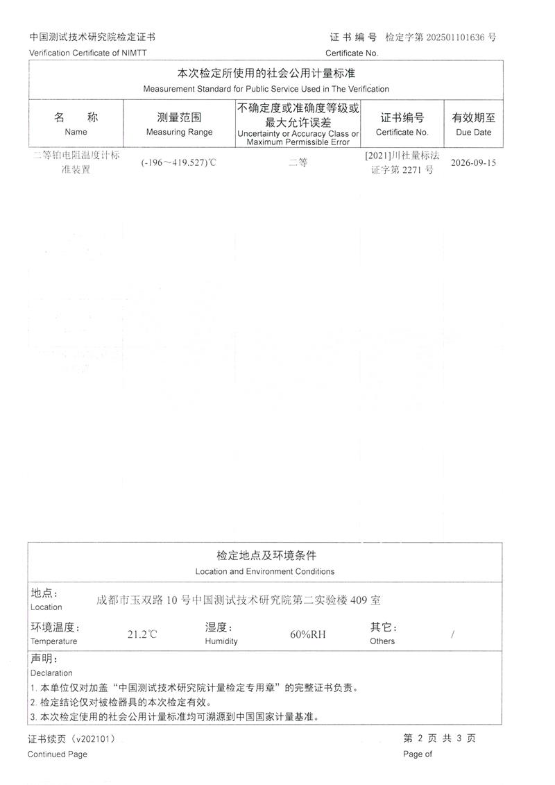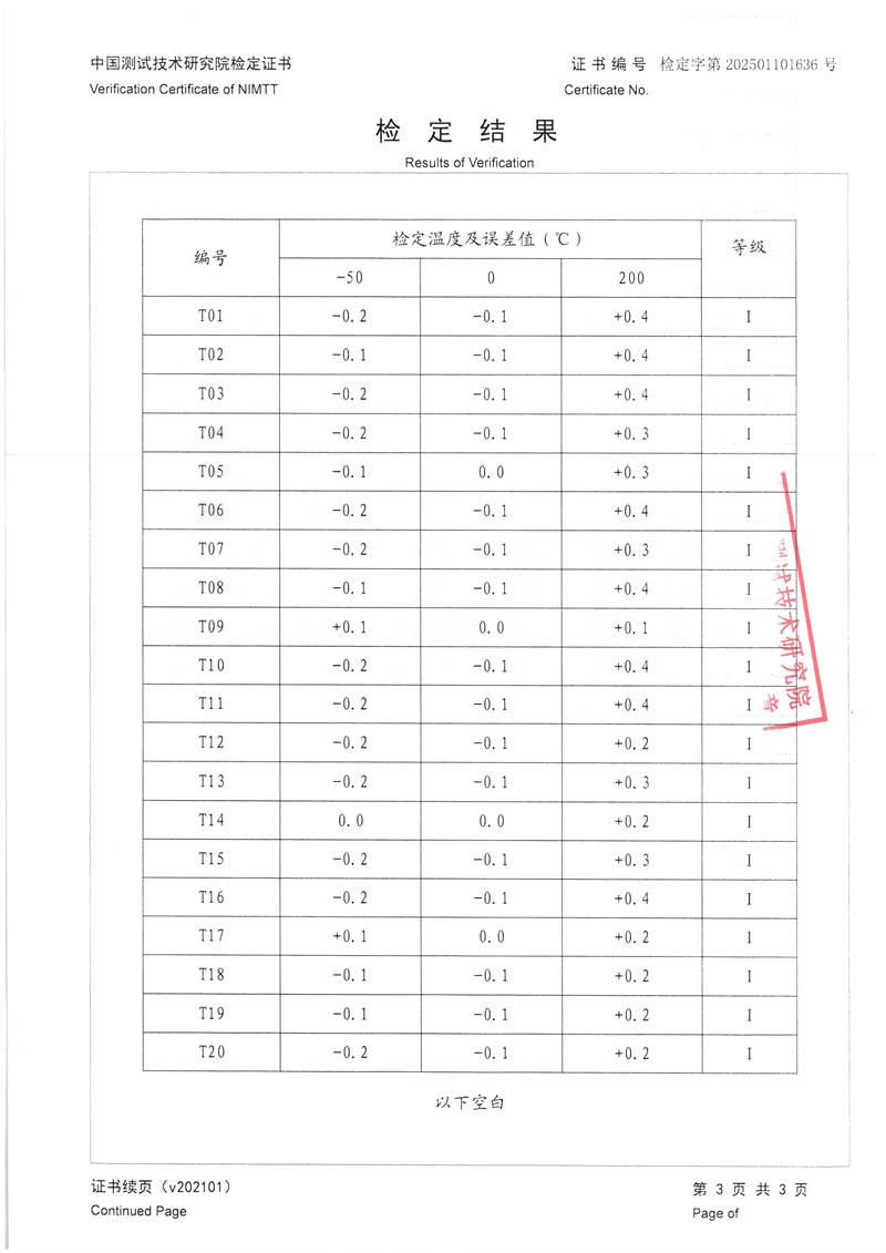 (T型)低溫測試熱電偶檢定證書 2025-1-13 本文被閱讀 6094 次