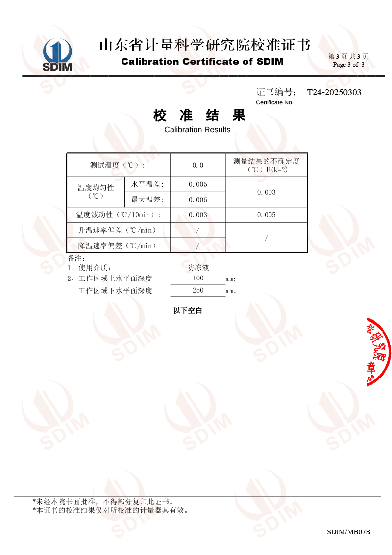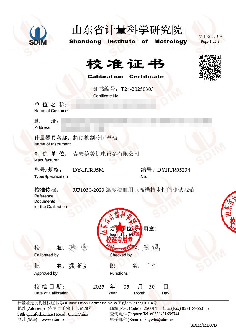 超便攜制冷恒溫槽(0-100℃)校準證書 2025-6-5 本文被閱讀 3555 次