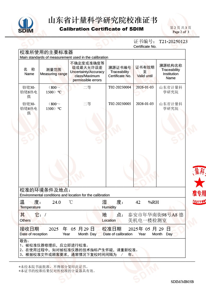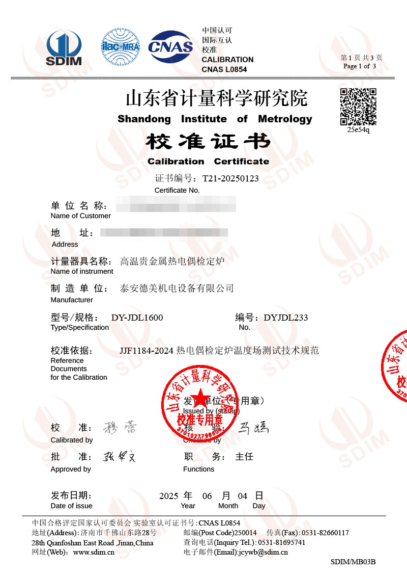 高溫貴金屬熱電偶檢定爐(800-1600℃)校準證書 2025-6-5 本文被閱讀 3541 次