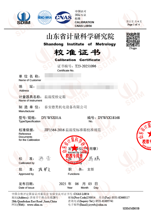 | 上一條:高溫貴金屬熱電偶檢定爐(800-1600℃)校準(zhǔn)證書 | 下一條:水三相點瓶凍制與保存裝置校準(zhǔn)證書 |