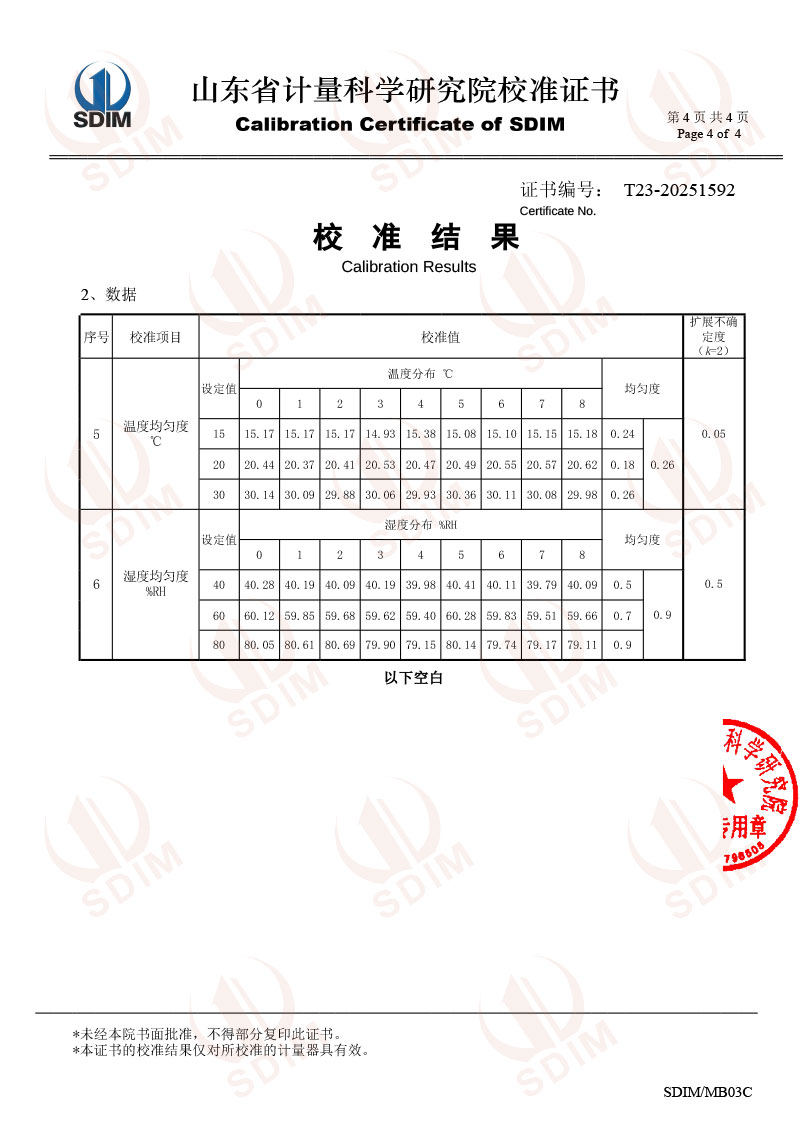 溫濕度檢定箱(-20-70℃)校準(zhǔn)證書