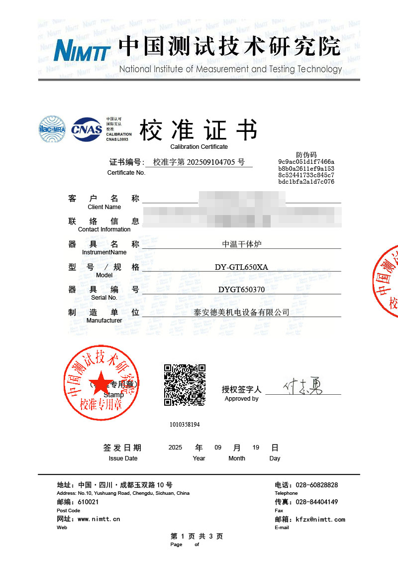 中溫干體爐(30-650℃)校準(zhǔn)證書 2025-9-22 本文被閱讀 2006 次