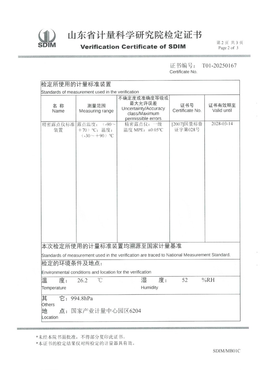 冷鏡式露點儀檢定、校準證書 2025-9-23 本文被閱讀 2069 次