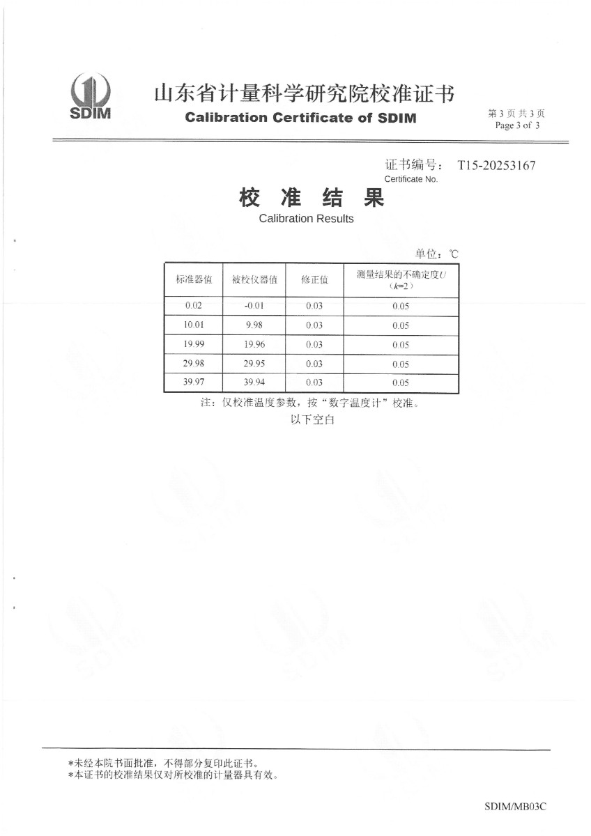 上一條:高精度數(shù)字溫度計(-20-100℃)校準證書下一條:水三相點瓶凍制與保存裝置校準證書