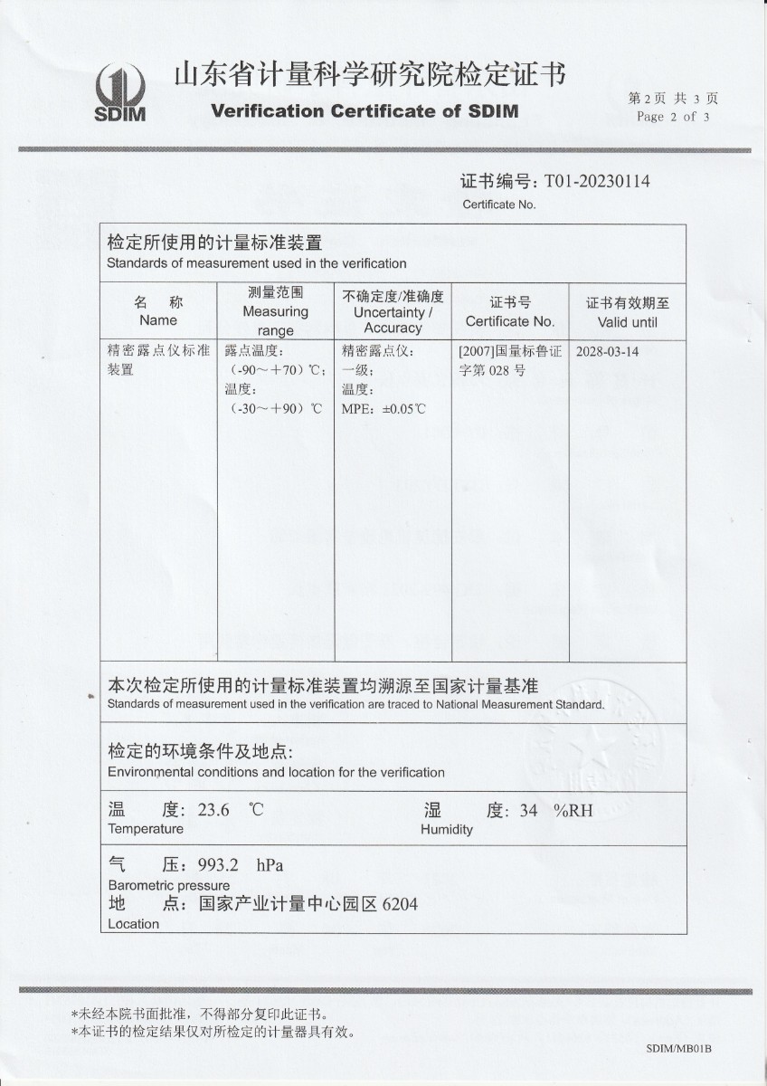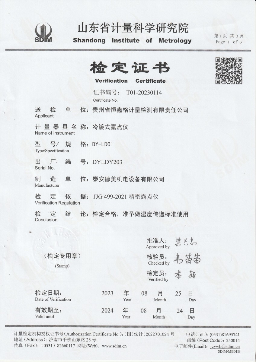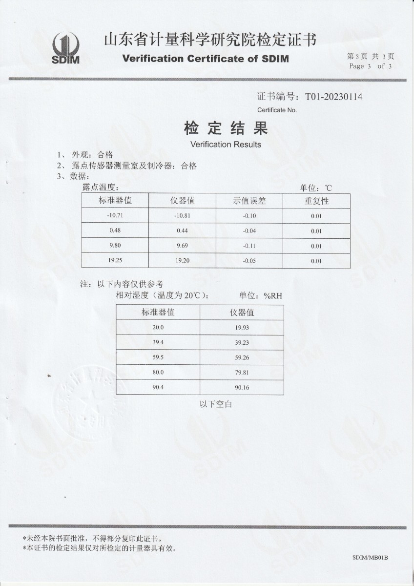 | 上一條:貴州省恒鑫格計量檢測有限責(zé)任公司-冷鏡式露點儀校準(zhǔn)證書 | 下一條:水三相點瓶凍制與保存裝置校準(zhǔn)證書 |