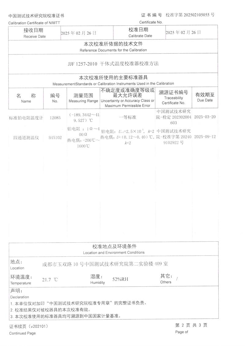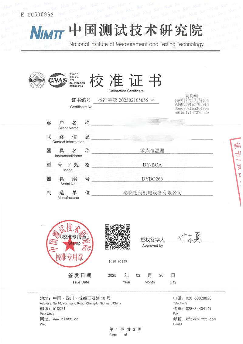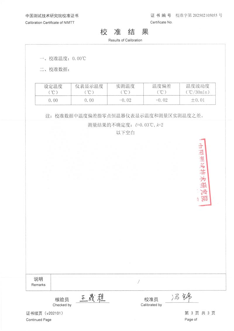 零點恒溫器校準證書 2025-3-1 本文被閱讀 6061 次