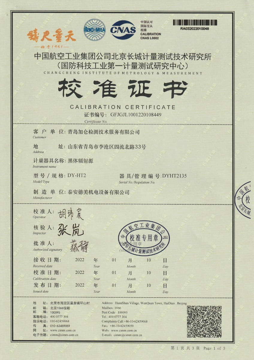 青島加侖檢測(cè)技術(shù)服務(wù)有限公司-黑體輻射源 2022-2-7 本文被閱讀 18036 次