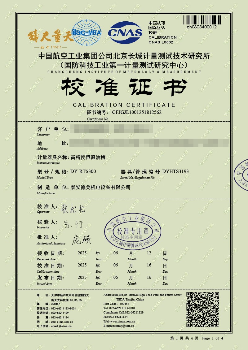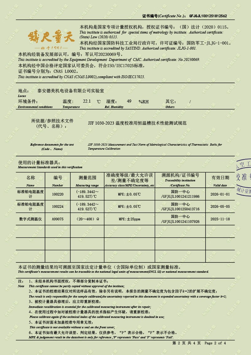 | 上一條:高精度制冷恒溫(-40-100℃)校準(zhǔn)證書 | 下一條:水三相點瓶凍制與保存裝置校準(zhǔn)證書 |