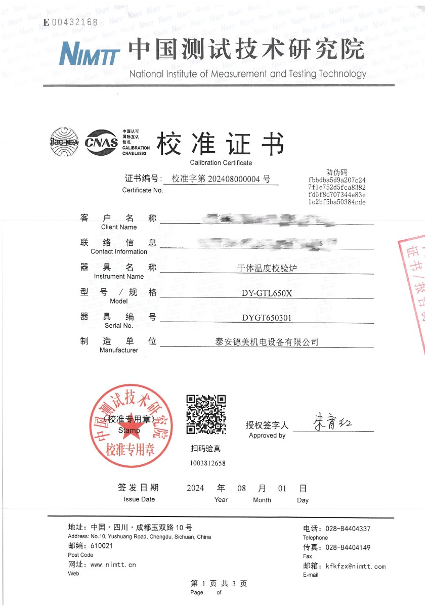 | 上一條:干體爐300(室溫+5℃~650℃)校準(zhǔn)證書 | 下一條:水三相點(diǎn)瓶?jī)鲋婆c保存裝置校準(zhǔn)證書 |