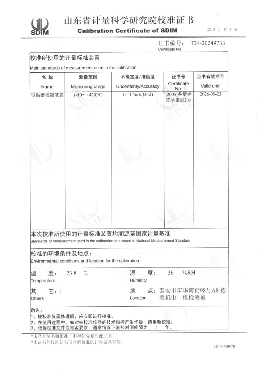 高精度恒溫油槽(70~300)℃校準證書 2024-9-25 本文被閱讀 7479 次