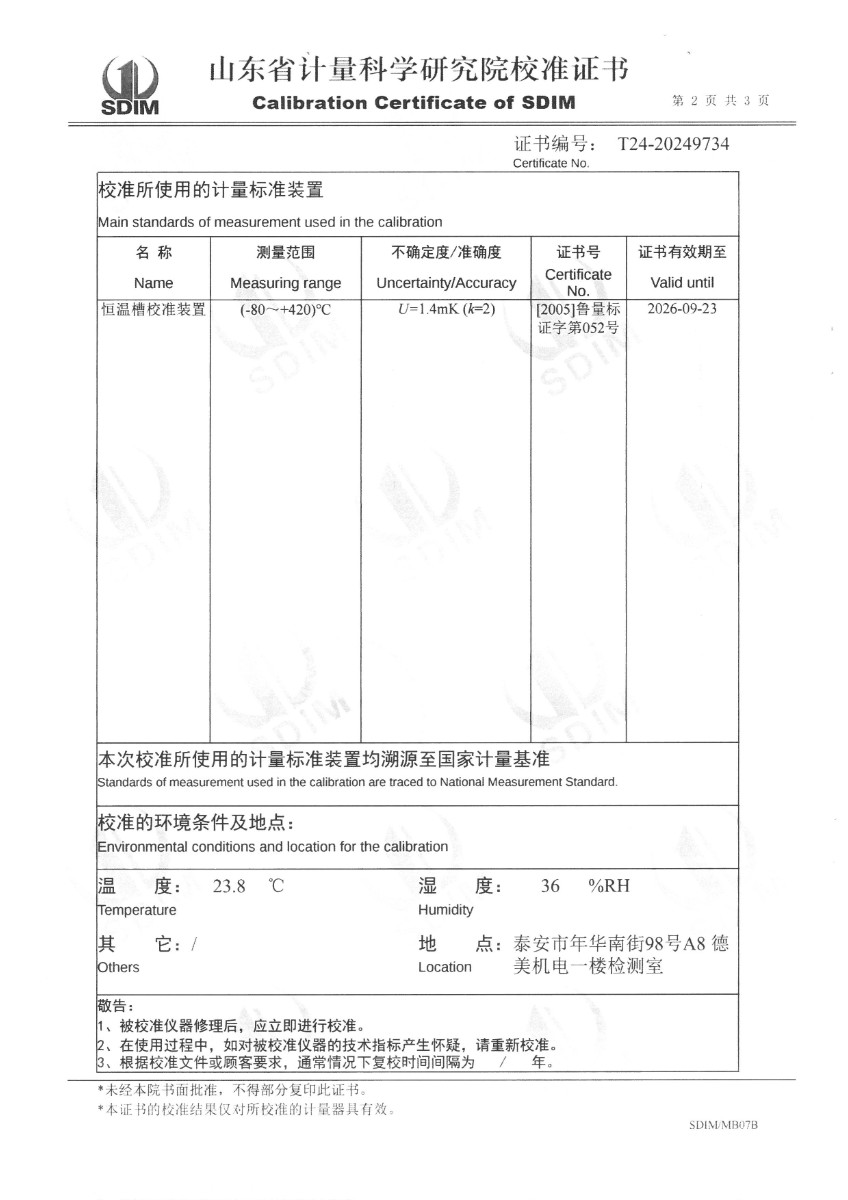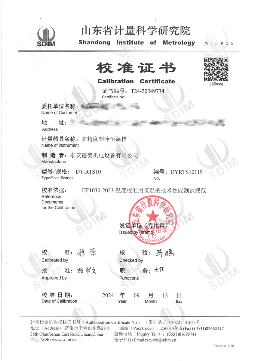 高精度制冷恒溫槽(-10~95℃)校準證書 2024-9-25 本文被閱讀 8668 次