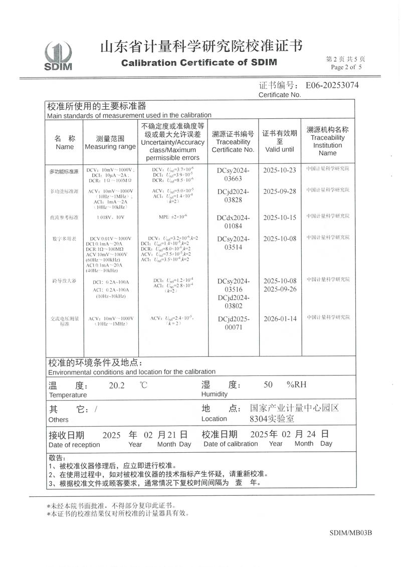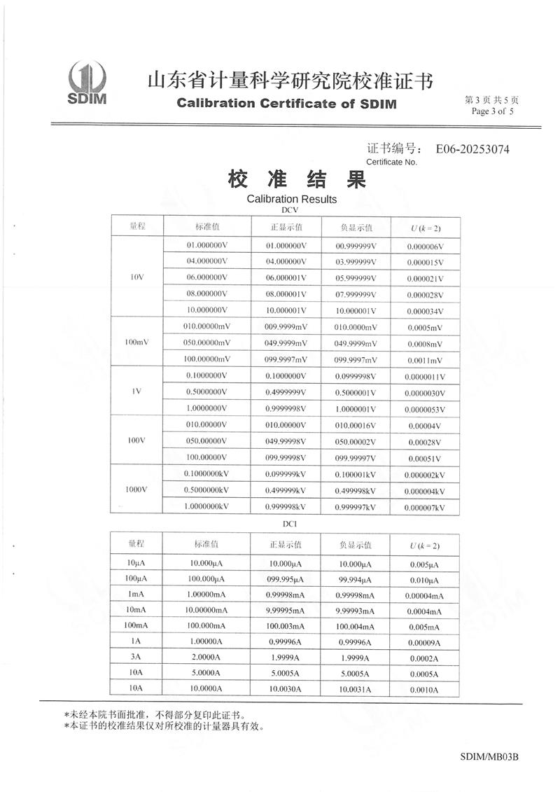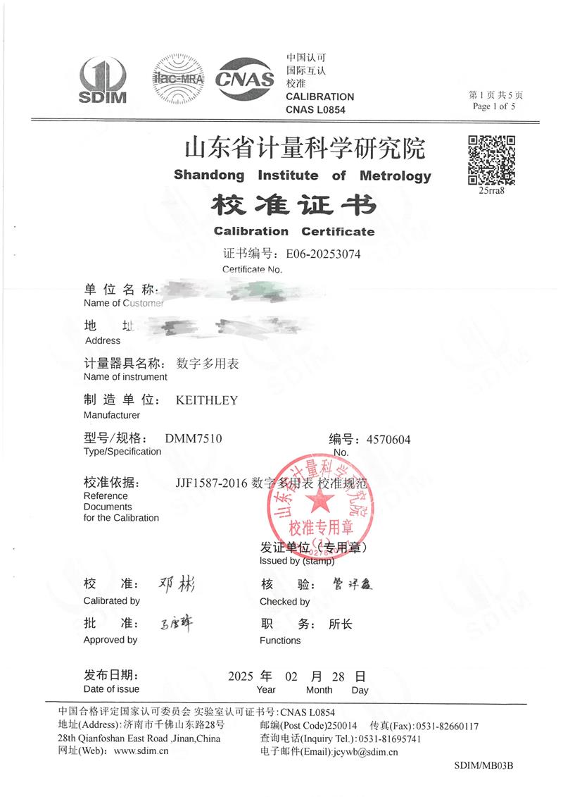 數(shù)字多用表校準證書 2025-3-8 本文被閱讀 4185 次