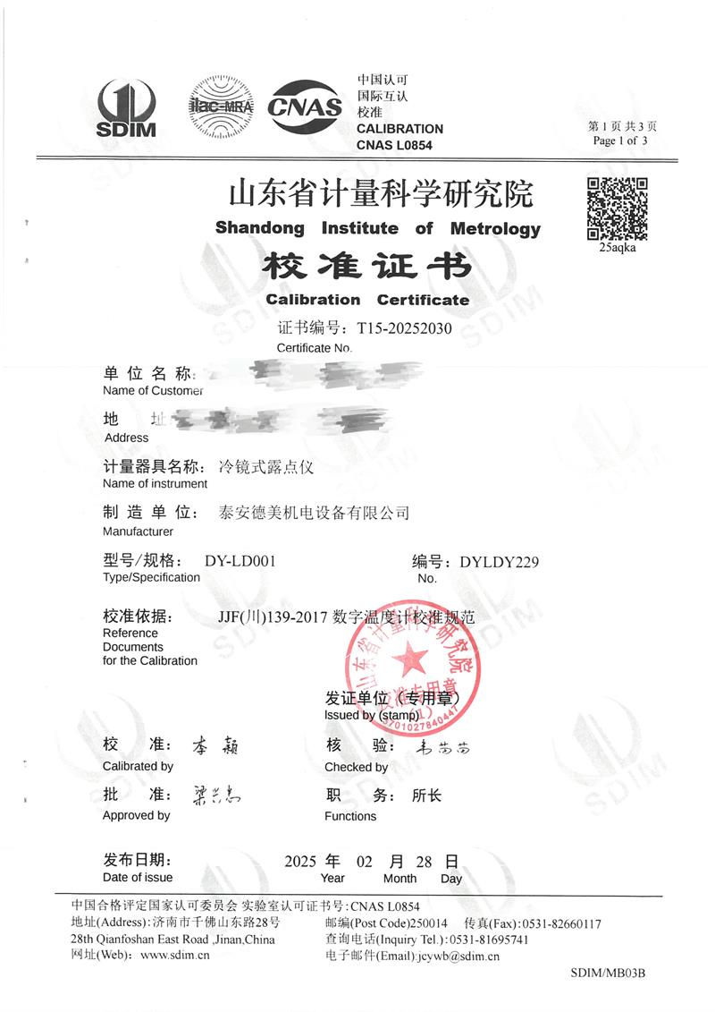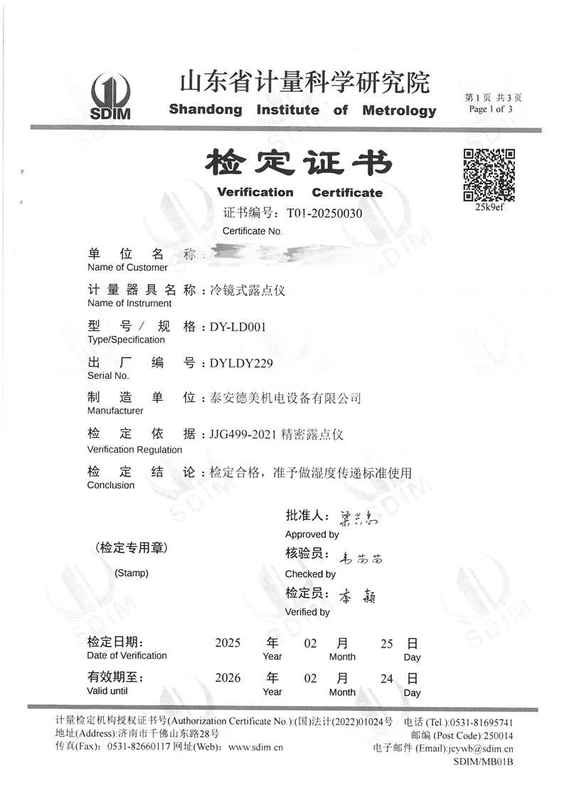 露點(diǎn)儀檢定、校準(zhǔn)證書 2025-3-8 本文被閱讀 4536 次