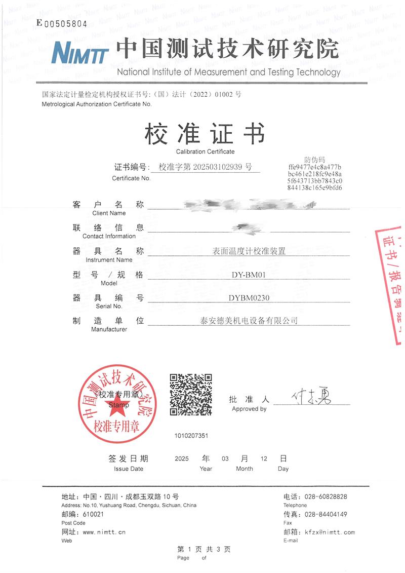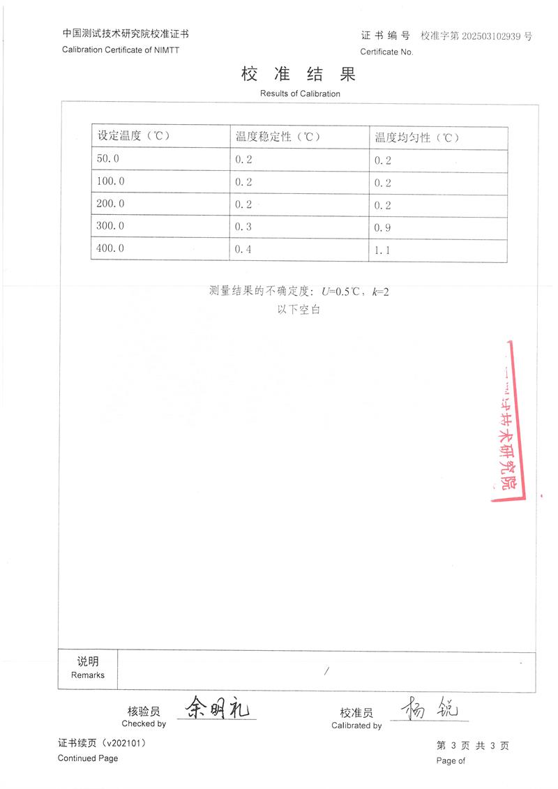 | 上一條:中溫黑體爐(50~700℃)校準(zhǔn)證書 | 下一條:水三相點瓶凍制與保存裝置校準(zhǔn)證書 |