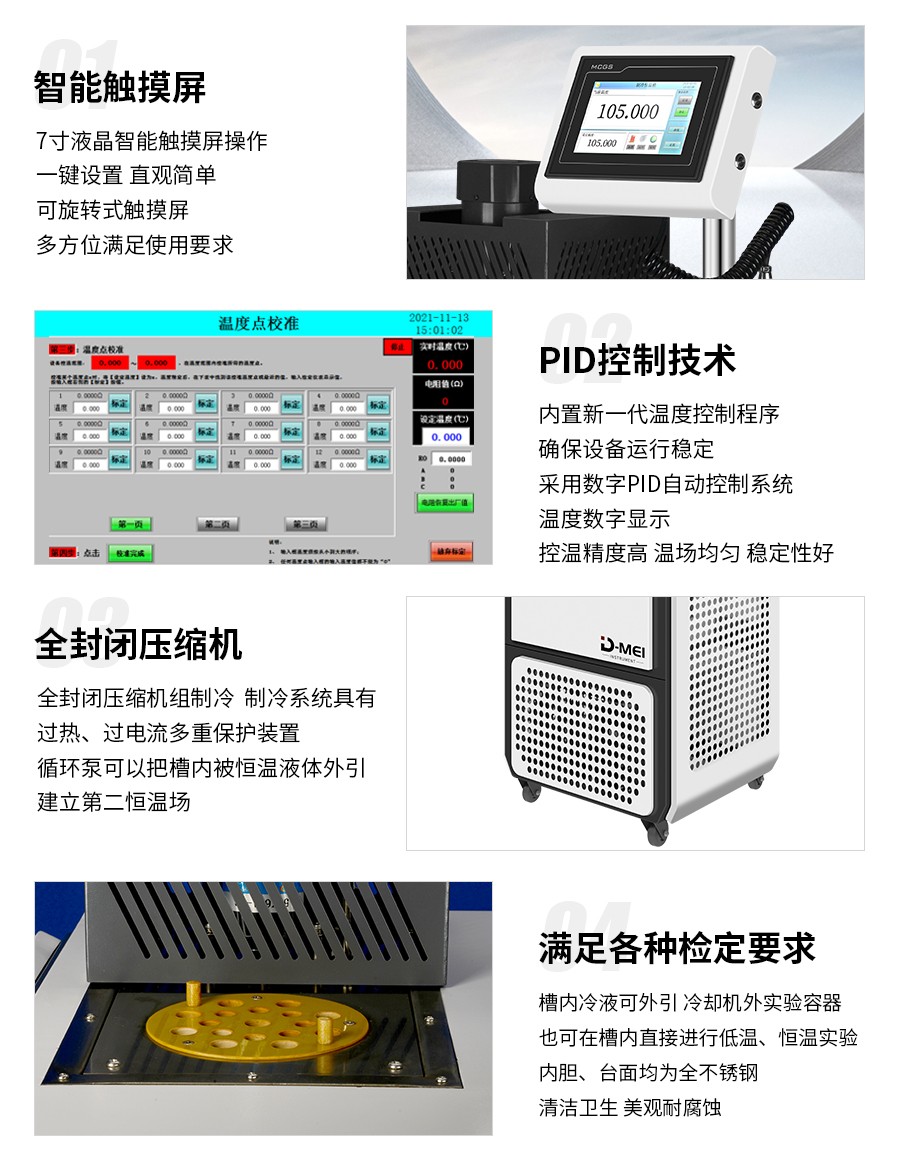 DY-RTS40制冷恒溫槽(-40℃/-30℃~105℃)是高精度自控式溫度檢定設(shè)備,控溫精度高,溫場均勻,穩(wěn)定性好,操作方便,采用全封閉壓縮機(jī)制冷系統(tǒng),外殼和內(nèi)膽都采用全不銹鋼材料制造,產(chǎn)品供計(jì)量部門作一、二等標(biāo)準(zhǔn)水銀溫度計(jì),貝克曼溫度計(jì)。工業(yè)鉑熱電阻,標(biāo)準(zhǔn)銅-康銅熱電偶檢定之用,也可作高精度熱、冷源供生產(chǎn)、科研使用。制冷恒溫槽是一種高精度自控式數(shù)顯溫度檢定裝置,它具有溫度穩(wěn)定性好,溫場均勻,控溫精度高等特點(diǎn)。制冷系統(tǒng)采用全封閉制冷機(jī),具有噪音低、可靠性好、壽命長。數(shù)顯溫控儀按PID調(diào)節(jié)規(guī)律實(shí)現(xiàn)溫度自動(dòng)控制,結(jié)構(gòu)緊湊、操作方便、槽溫讀數(shù)直觀。適用于各計(jì)量、生化、石油、氣象、能源、環(huán)保、醫(yī)藥等部門及生產(chǎn)溫度計(jì)、控溫器等廠家進(jìn)行物理參數(shù)的檢測,并可為其他實(shí)驗(yàn)研究工作提供恒溫源。