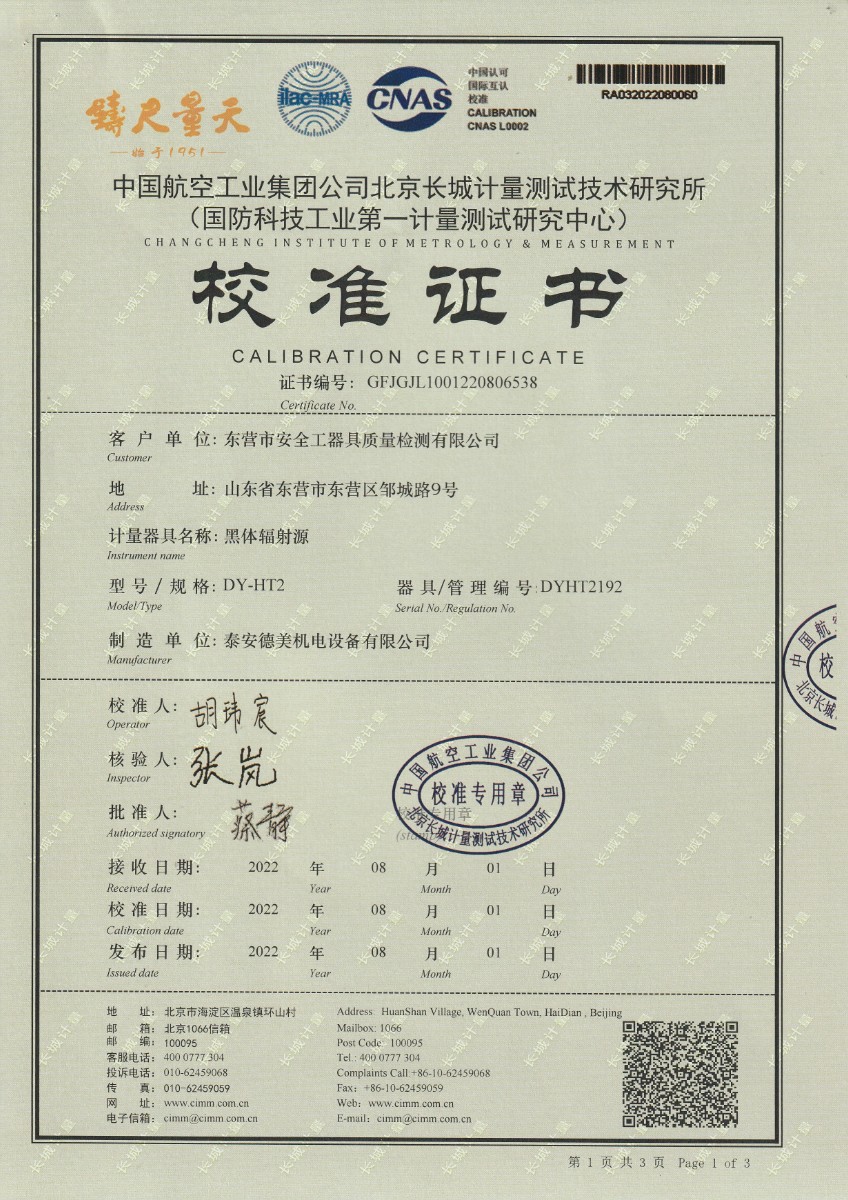 | 上一條:滁州捷泰新能源科技有限公司-面源黑體爐 | 下一條:水三相點(diǎn)瓶?jī)鲋婆c保存裝置校準(zhǔn)證書(shū) |