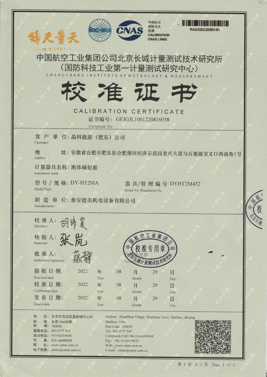 晶科能源(肥東)公司-黑體輻射源 2022-9-5 本文被閱讀 13364 次