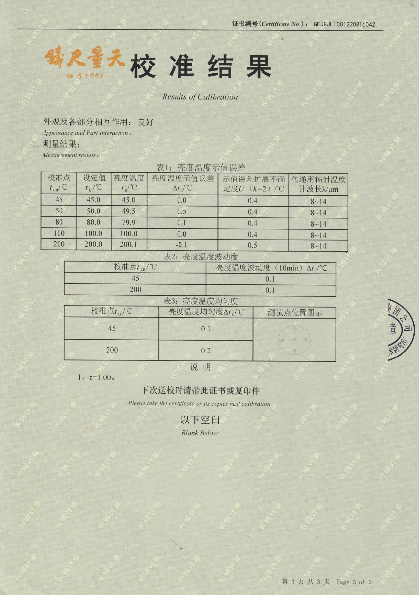 | 上一條:中國科學(xué)院長春光學(xué)精密機械與物理研究所-黑體爐DY-HT1-11 | 下一條:水三相點瓶凍制與保存裝置校準證書 |