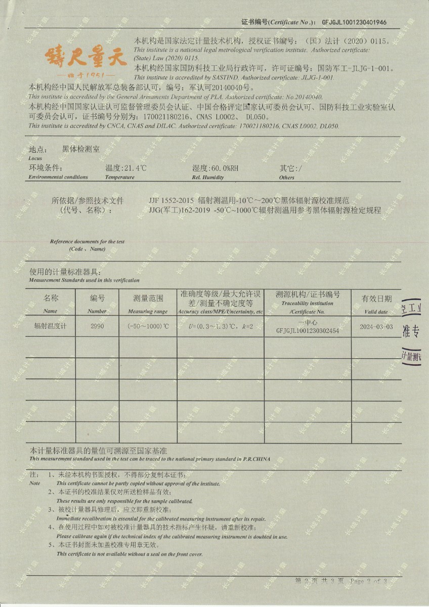 | 上一條:無錫英菲感知技術(shù)有限公司 高溫黑體 校準(zhǔn)證書(1) | 下一條:水三相點瓶凍制與保存裝置校準(zhǔn)證書 |