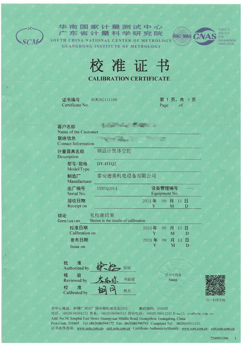 額溫計(jì)黑體空腔校準(zhǔn)證書 2024-9-21 本文被閱讀 7358 次