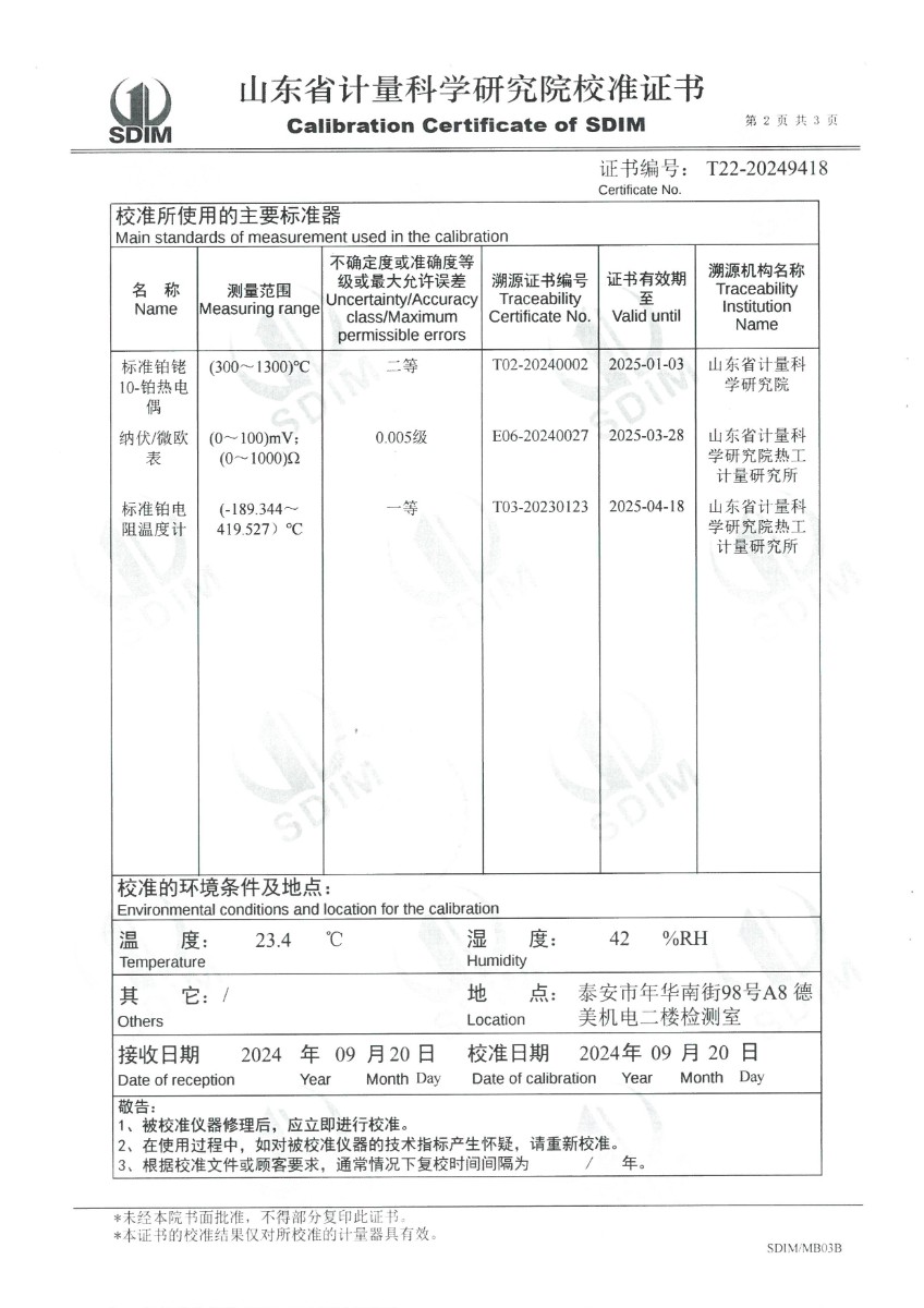 上一條:貴金屬熱電偶檢定爐(800~1600℃)校準證書下一條:水三相點瓶凍制與保存裝置校準證書