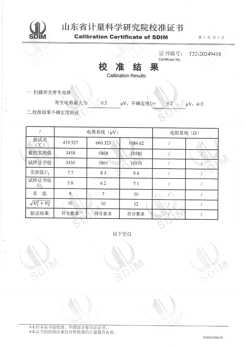 熱電阻、熱電偶自動檢測系統(tǒng)校準證書