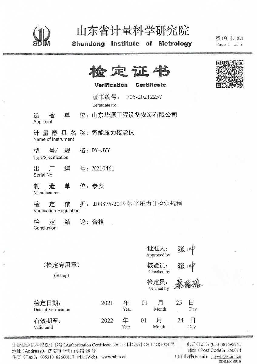 | 上一條:山東華源工程設(shè)備安裝有限公司-智能壓力校驗(yàn)儀X210460 | 下一條:水三相點(diǎn)瓶?jī)鲋婆c保存裝置校準(zhǔn)證書 |