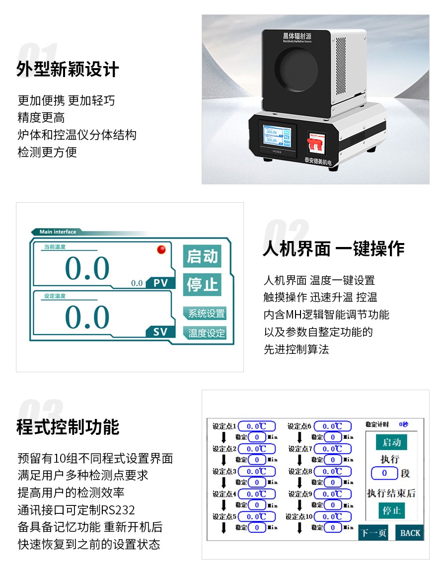 5)大面源等溫黑體輻射面,發(fā)射率出廠默認0.95,如需要不同發(fā)射率可在0.96-0.99之間發(fā)射率可調(diào)。