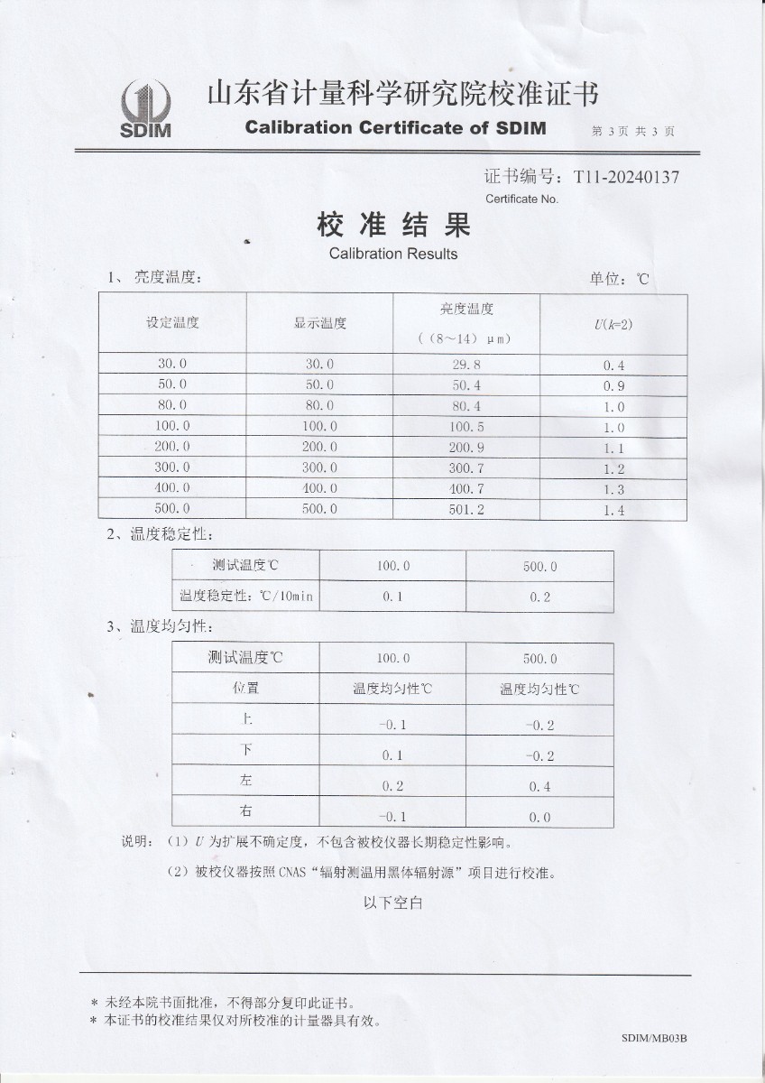 面源黑體爐校準(zhǔn)證書 2024-3-27 本文被閱讀 6864 次