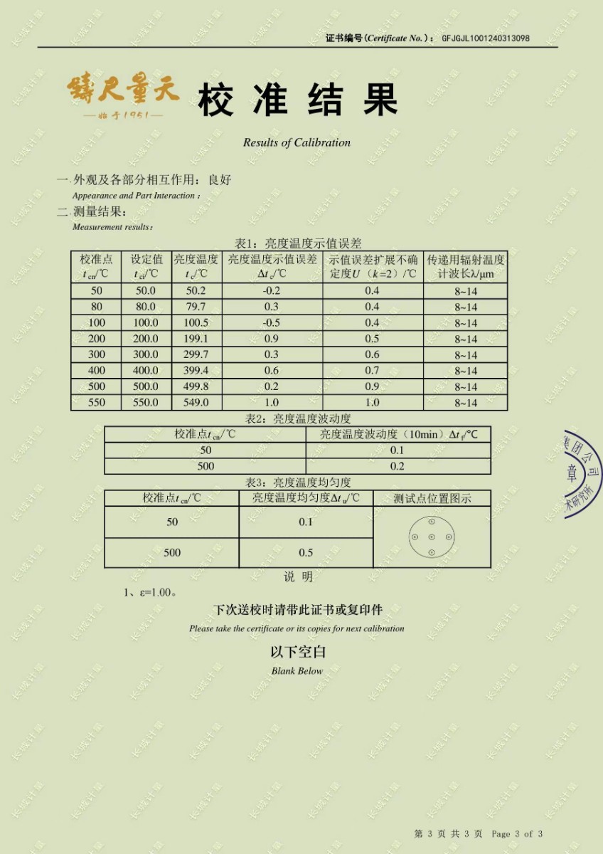黑體輻射源校準(zhǔn)證書 2024-4-11 本文被閱讀 6702 次