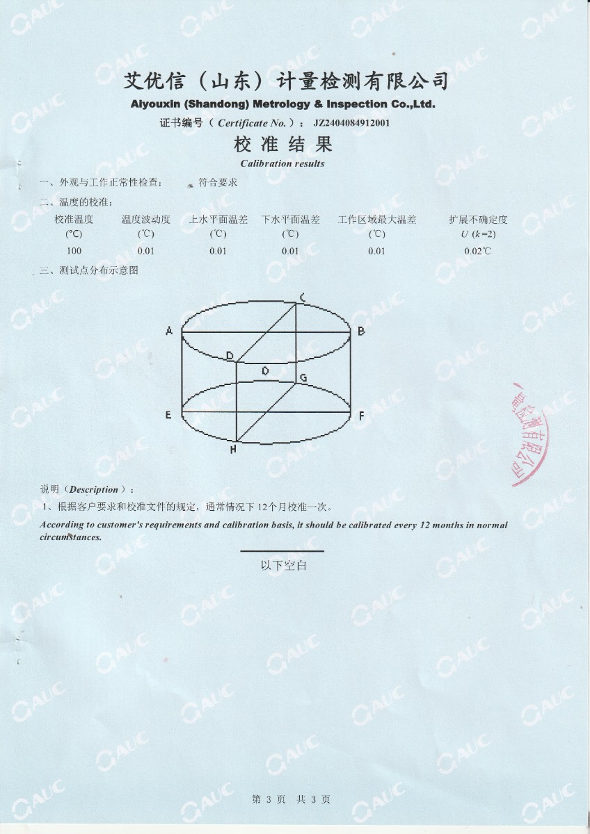 便攜式恒溫油槽校準證書 2024-4-13 本文被閱讀 7078 次