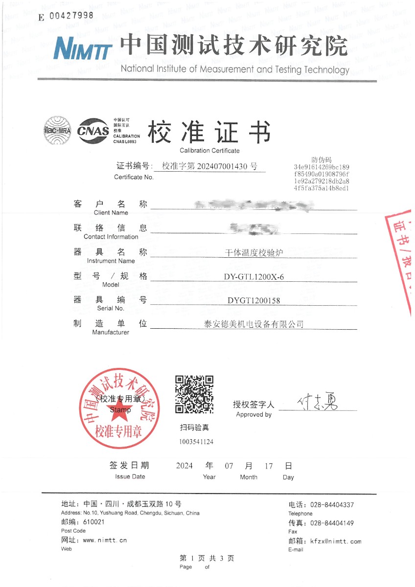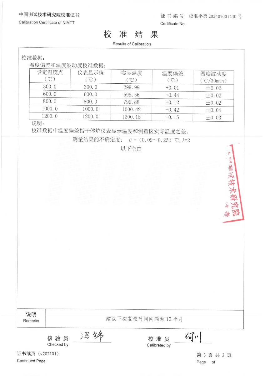 | 上一條:熱電偶檢定爐(300~1200℃)校準(zhǔn)證書 | 下一條:水三相點(diǎn)瓶?jī)鲋婆c保存裝置校準(zhǔn)證書 |