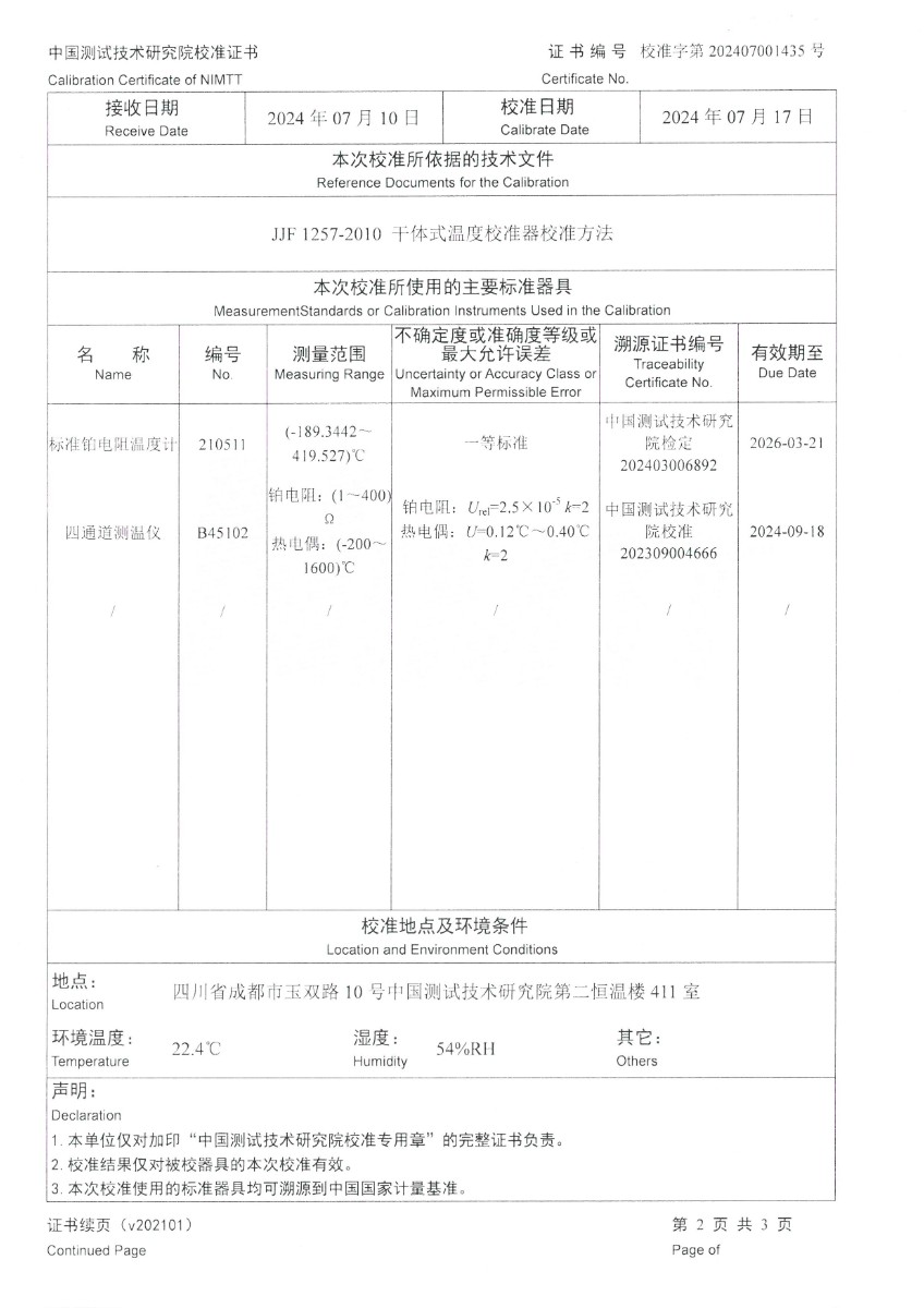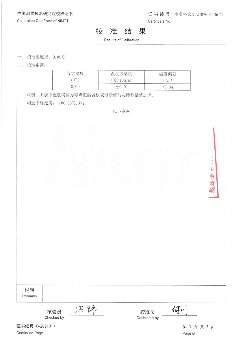 | 上一條:干體爐(300~1200)校準(zhǔn)證書 | 下一條:水三相點(diǎn)瓶?jī)鲋婆c保存裝置校準(zhǔn)證書 |