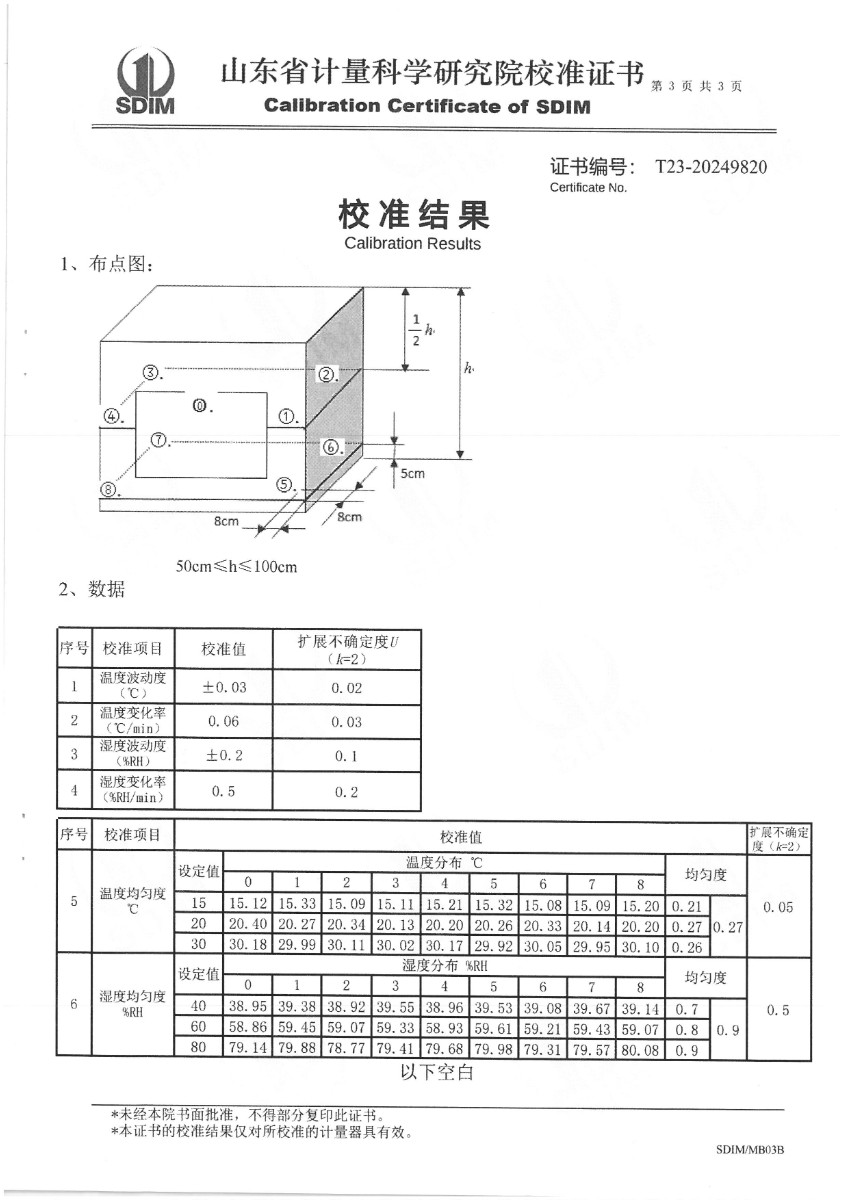 溫濕度檢定箱(-20~70℃)校準證書 2024-7-20 本文被閱讀 8090 次