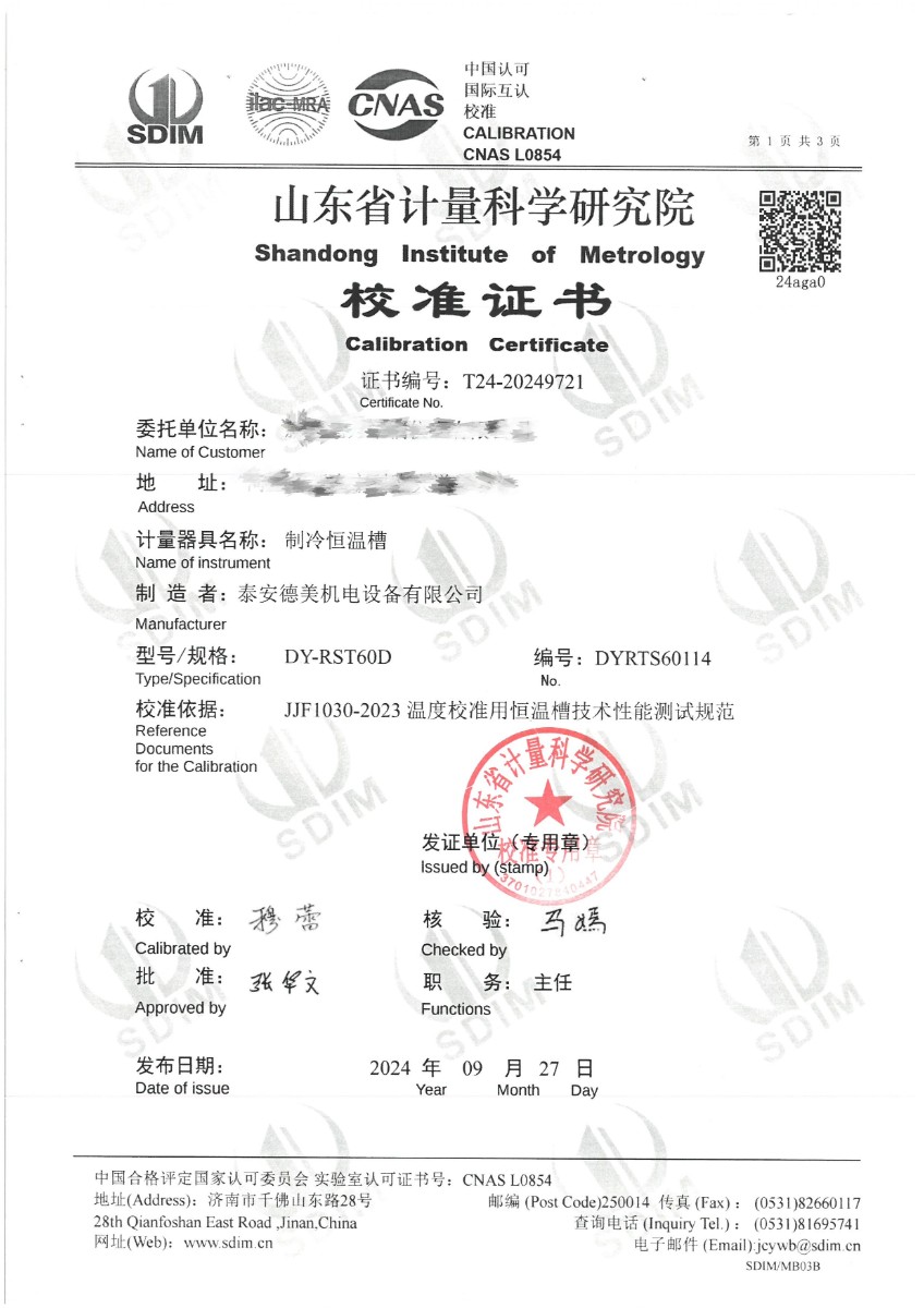 | 上一條:DY-YC-550高精度恒溫鹽槽(160℃~550(600℃)) | 下一條:水三相點(diǎn)瓶?jī)鲋婆c保存裝置校準(zhǔn)證書(shū) |