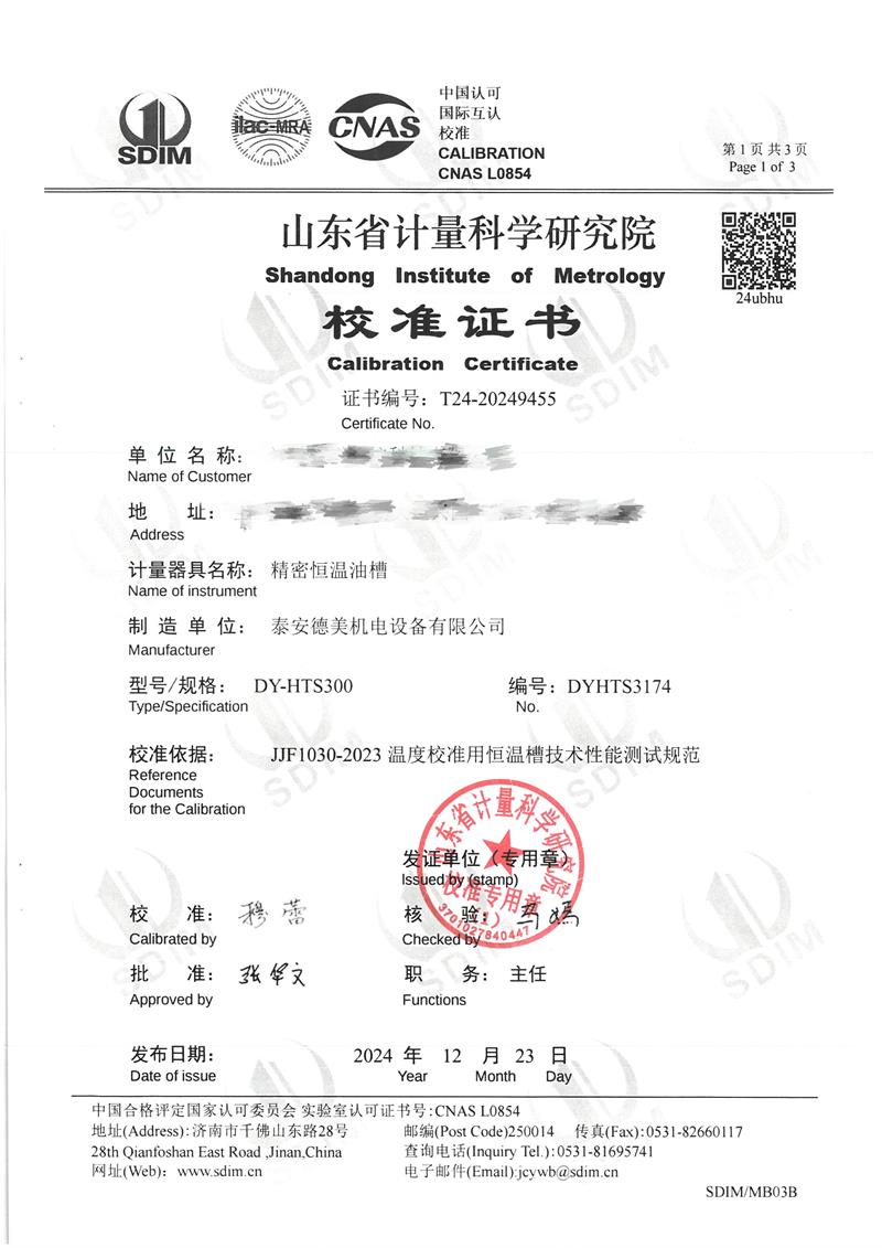 油槽(70~300℃)校準證書 2024-12-26 本文被閱讀 7291 次