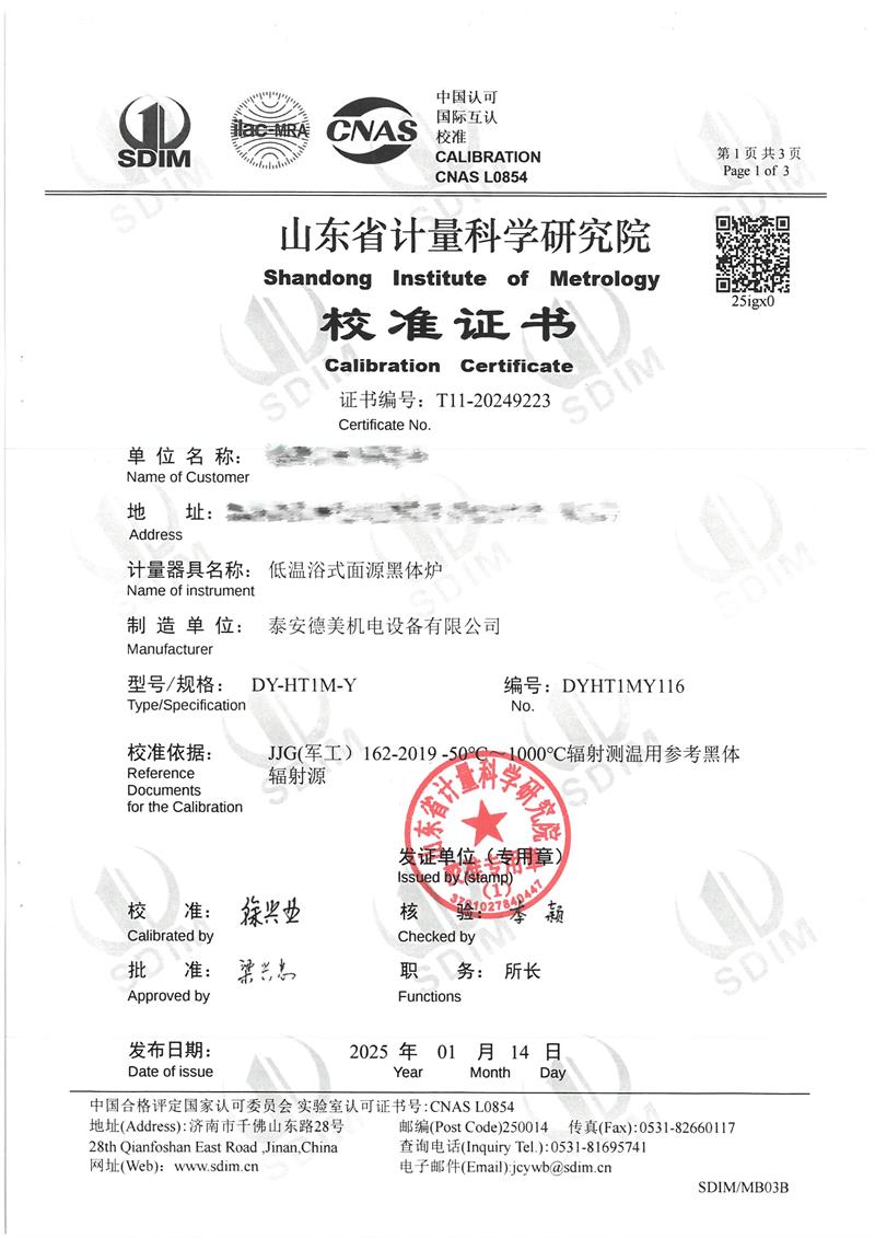 低溫浴式面源黑體爐(-50-80℃)校準(zhǔn)證書 2025-1-20 本文被閱讀 5816 次