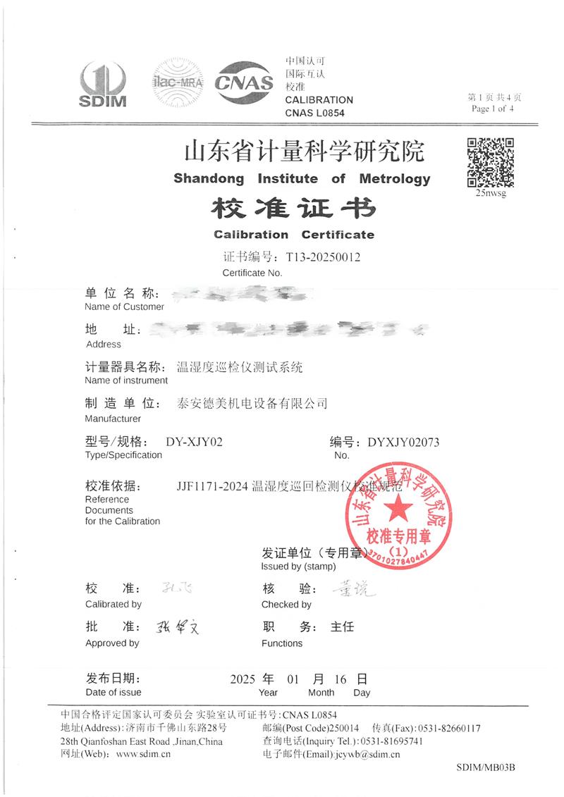 溫濕度巡檢儀測(cè)試系統(tǒng)校準(zhǔn)證書(shū) 2025-1-20 本文被閱讀 6164 次