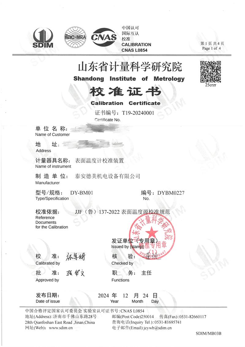 | 上一條:中溫腔式黑體爐(50~600℃)校準(zhǔn)證書 | 下一條:水三相點瓶凍制與保存裝置校準(zhǔn)證書 |