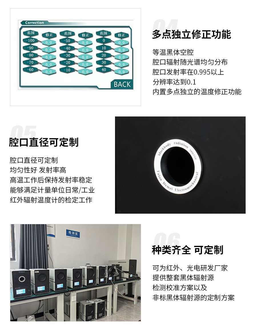 5)等溫黑體空腔,只一個腔口,腔口輻射隨光譜均勻分布,腔口發(fā)射率在0.995以上,分辨率達(dá)到0.1。