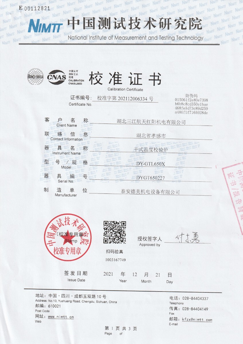 湖北三江航天紅陽機電有限公司-干式溫度校驗爐 2021-12-27 本文被閱讀 13595 次