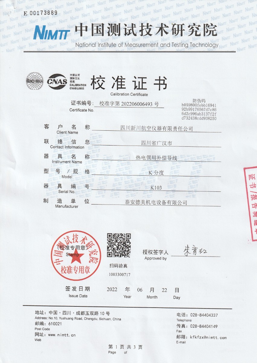 | 上一條:四川新川航空儀器有限責(zé)任公司-S分度補(bǔ)償導(dǎo)線 | 下一條:水三相點(diǎn)瓶?jī)鲋婆c保存裝置校準(zhǔn)證書(shū) |
