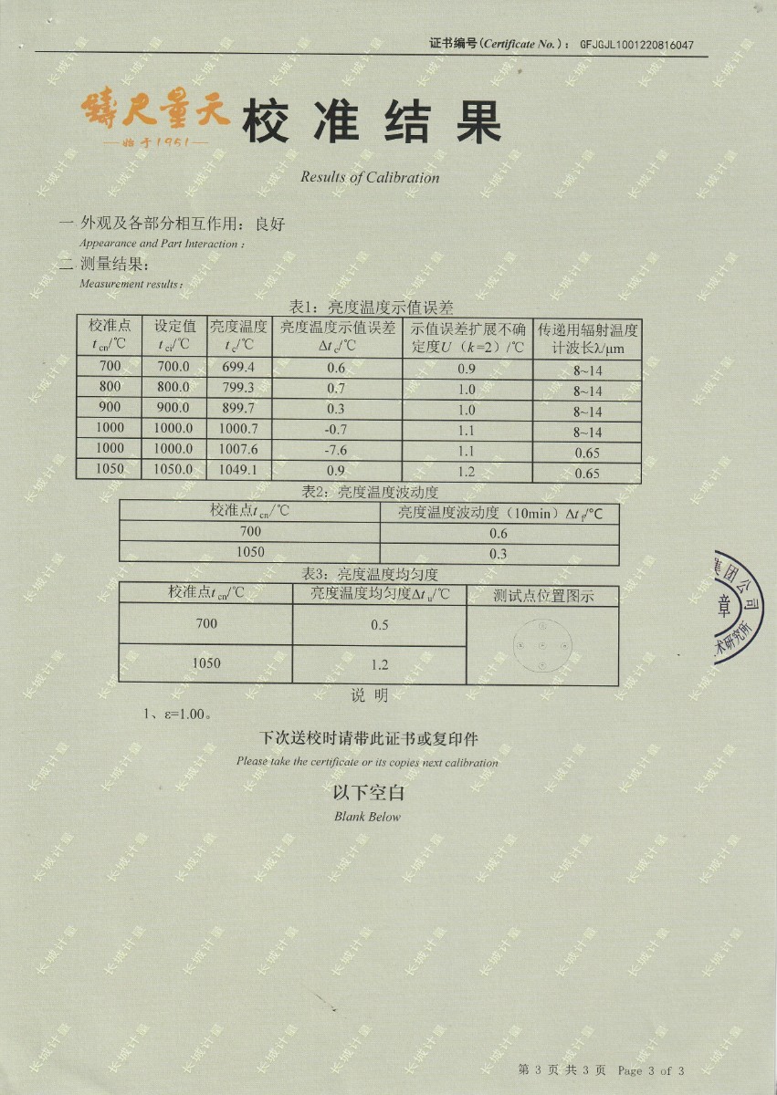| 上一條:中國科學(xué)院長春光學(xué)精密機(jī)械與物理研究所-黑體爐DY-HT3-1 | 下一條:水三相點(diǎn)瓶凍制與保存裝置校準(zhǔn)證書 |