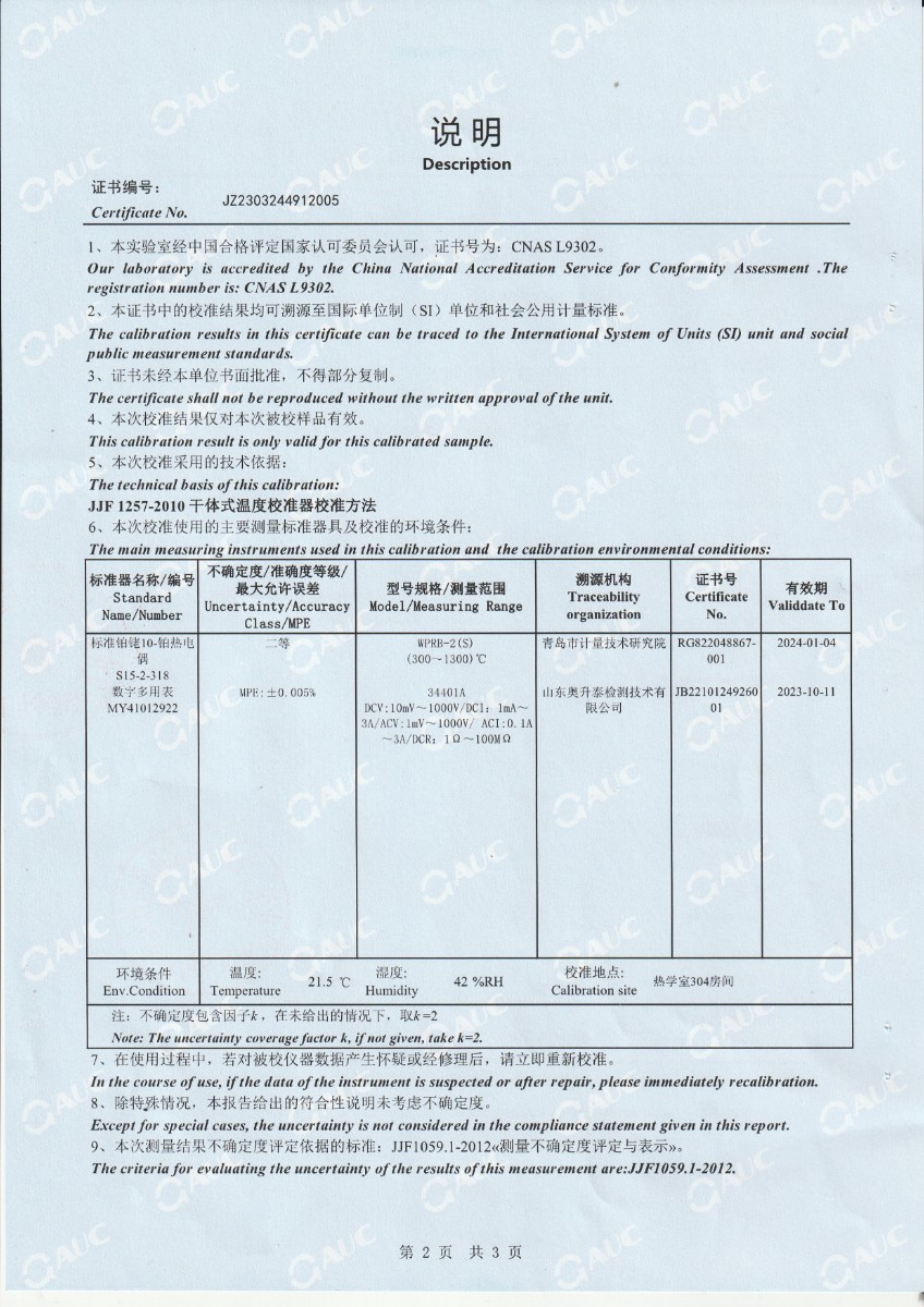 甘肅東興嘉寧新材料有限公司 干體溫度校驗爐 校準證書 2023-3-31 本文被閱讀 13556 次