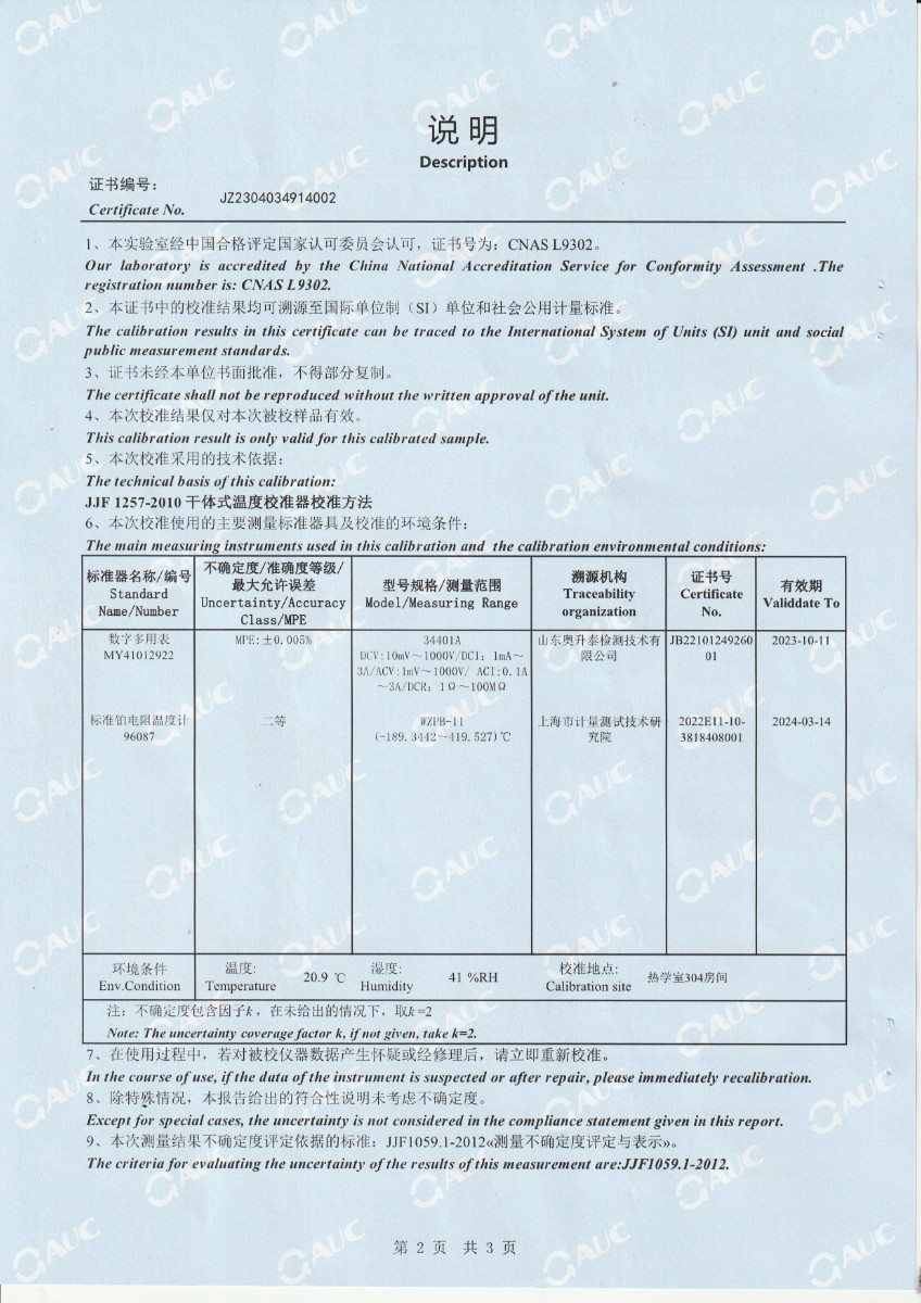開封光利高科實業(yè)有限責任公司送變電公司 變壓器溫度計校驗裝置 校準證書(2) 2023-4-15 本文被閱讀 10815 次