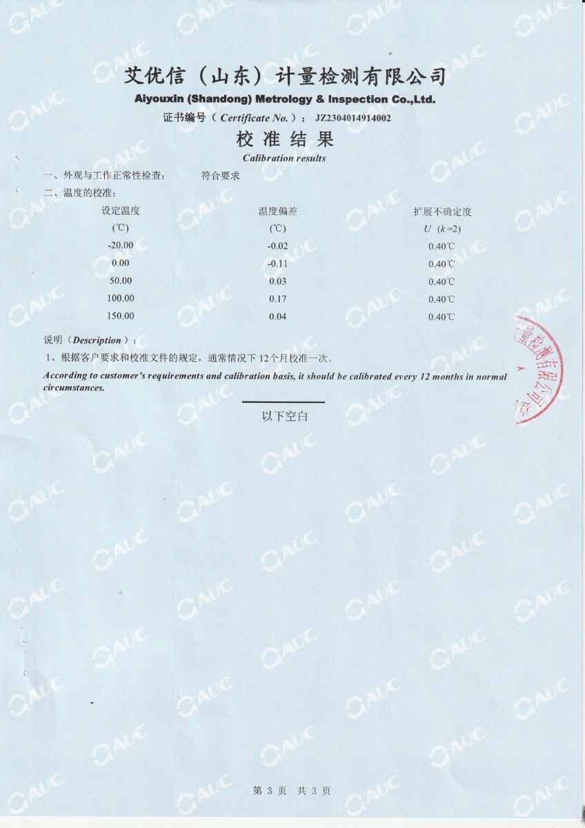| 上一條:沈陽吉地安風(fēng)電科技有限公司 干體溫度校驗(yàn)爐 校準(zhǔn)證書(1) | 下一條:水三相點(diǎn)瓶凍制與保存裝置校準(zhǔn)證書 |