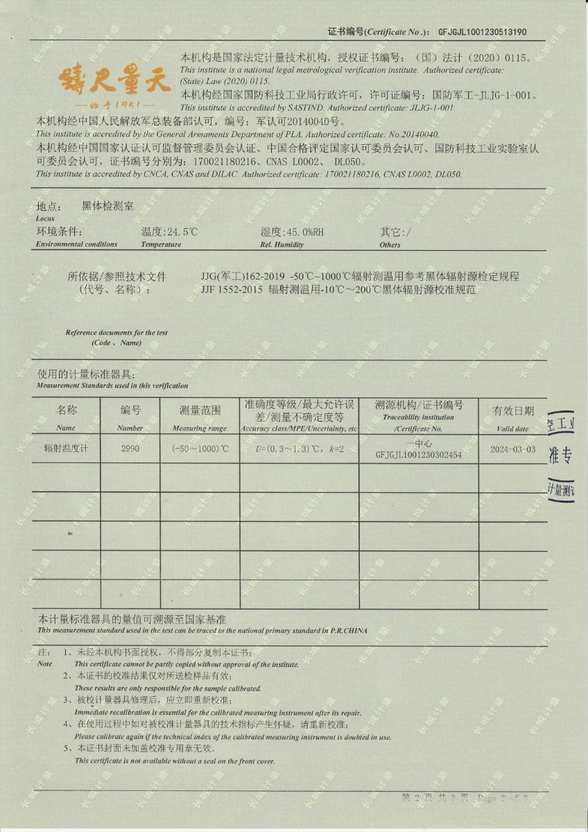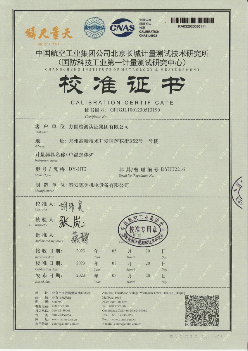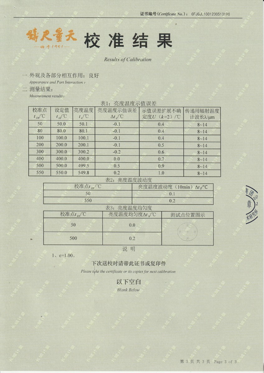 | 上一條:山東凱利布森測(cè)控技術(shù)有限公司 耳溫空腔(黑體輻射源) 校準(zhǔn)證書 | 下一條:水三相點(diǎn)瓶?jī)鲋婆c保存裝置校準(zhǔn)證書 |