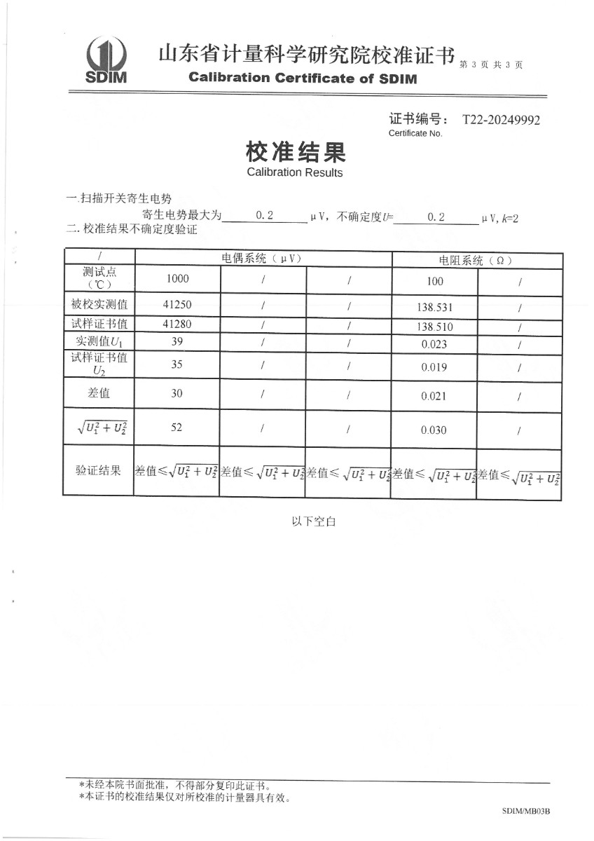 上一條:熱電偶檢定爐校準證書下一條:水三相點瓶凍制與保存裝置校準證書