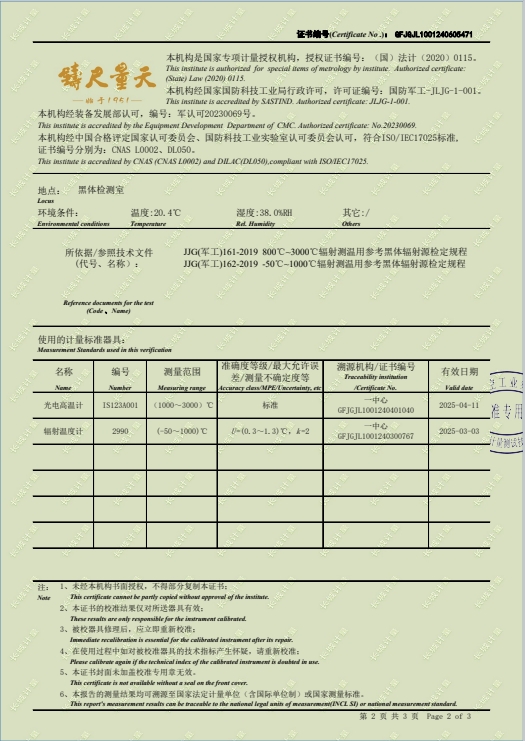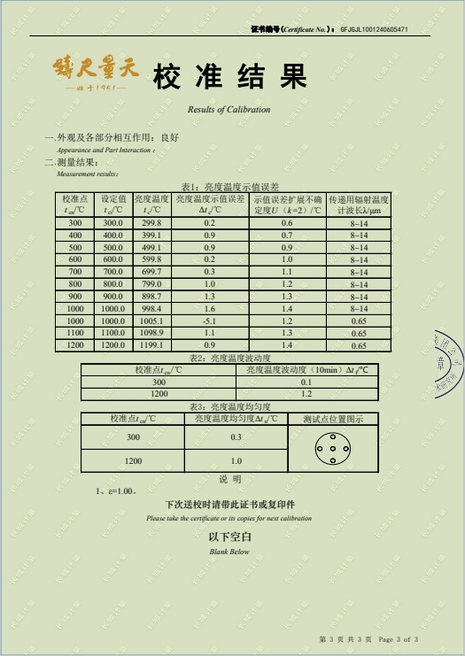 腔式黑體輻射源(300-1200℃)304所證書(shū) 2024-6-18 本文被閱讀 7132 次